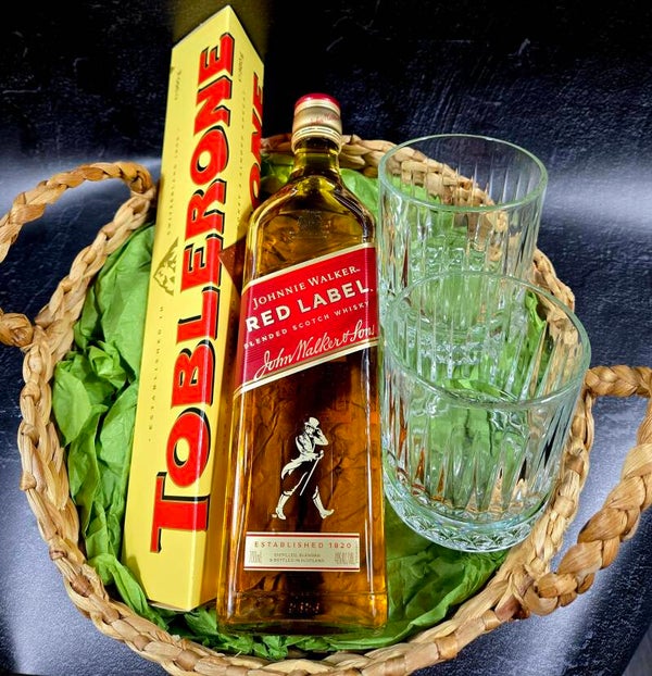 Looking for a gift hamper for a whiskey lover, we have a hamper to suit. Filled with generous size snacks and a 700ml bottle of the iconic Johnnie Walker Red label, all wrapped in cello and tied with a gorgeous bow, it won't disappoint!
