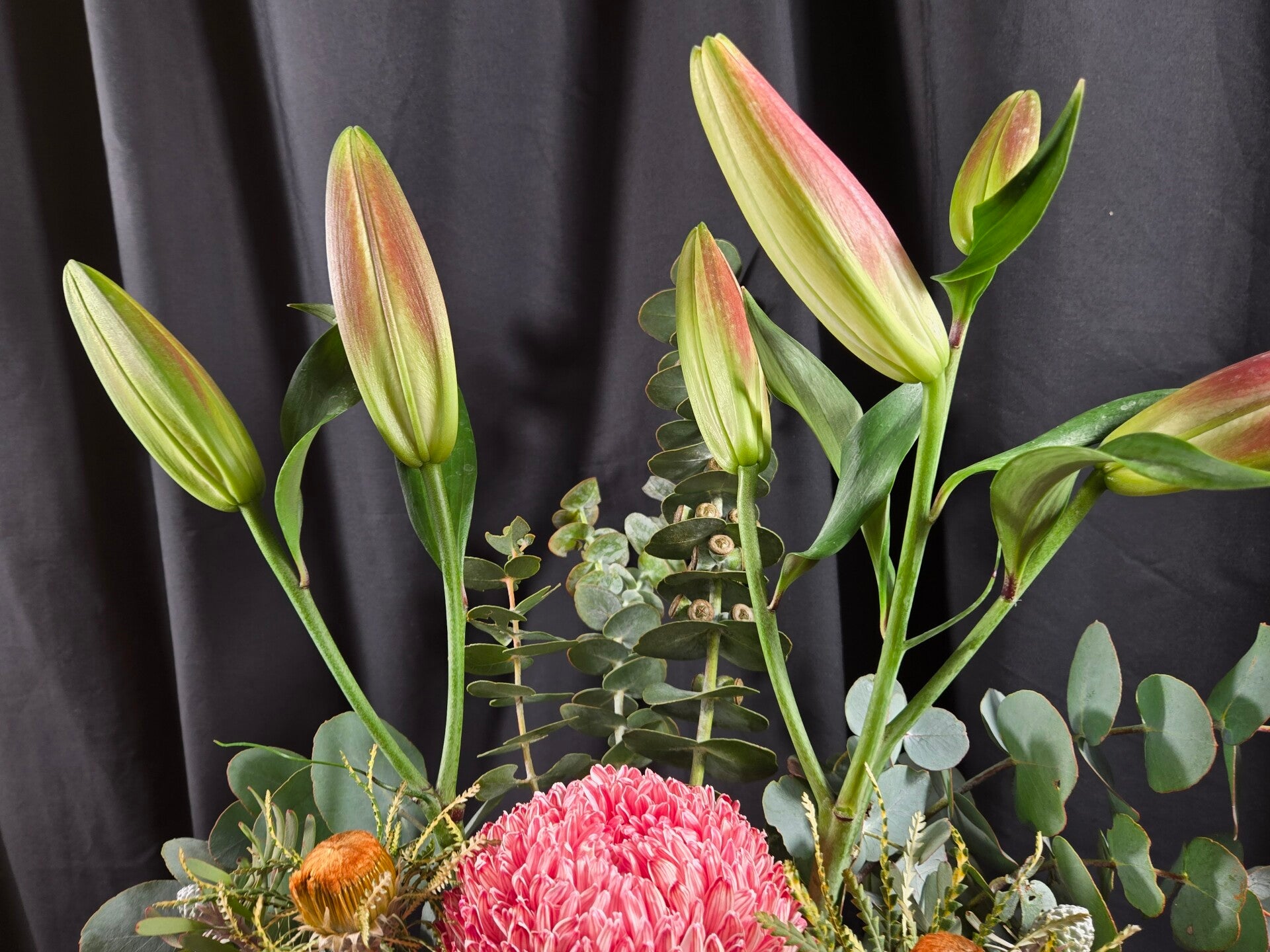 Designed and handcrafted by our florist using premium seasonal blooms. Flower varieties and foliage may vary depending on availability while keeping the overall colour palette and style true to the design.