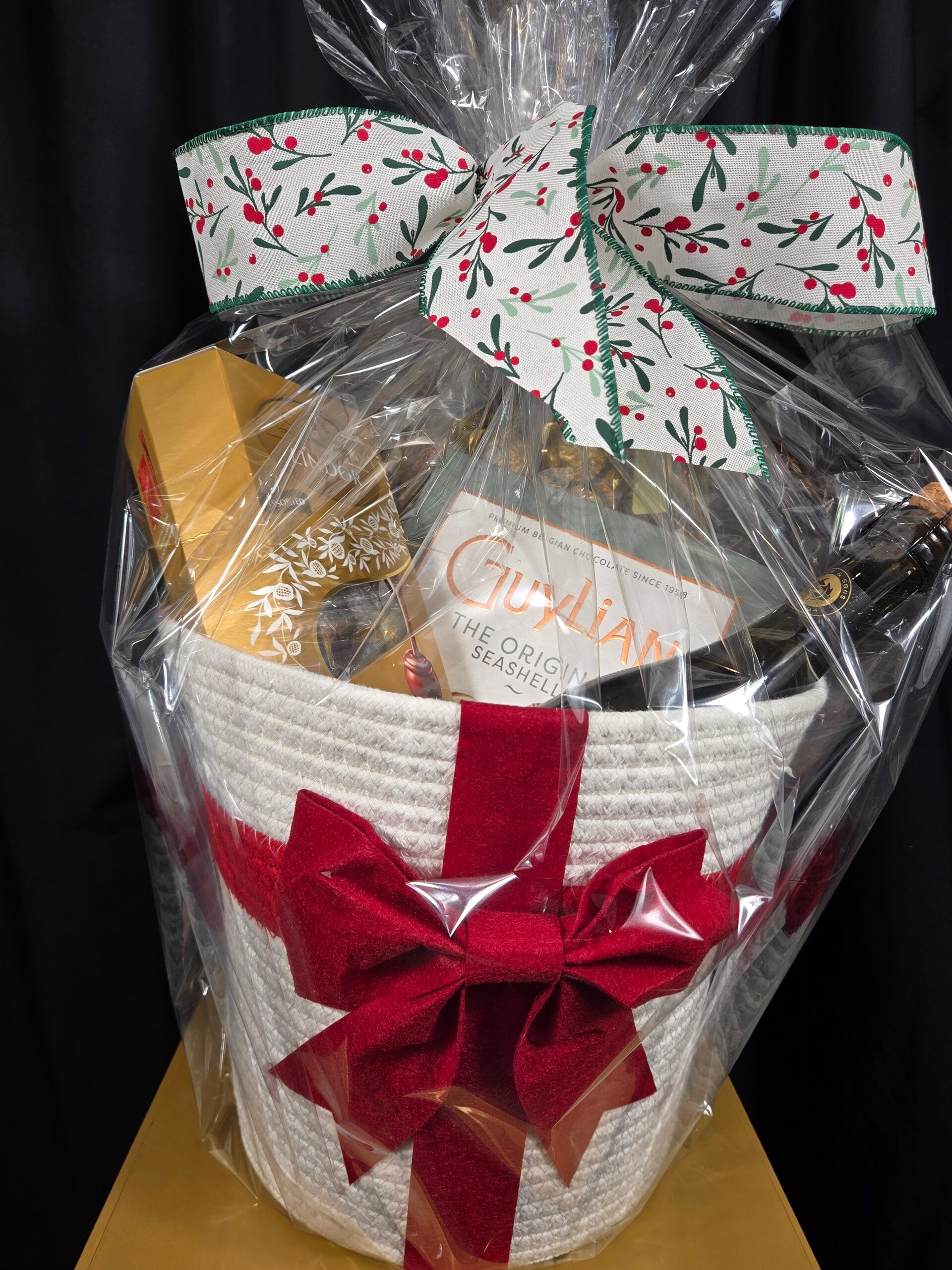 Inside you’ll find a luxurious selection including Lindt Lindor chocolates, Guylian Belgian chocolates, Ferrero Rocher, and a bottle of sparkling wine, making it the perfect gift for any celebrations, thank-you gestures, or festive entertaining.