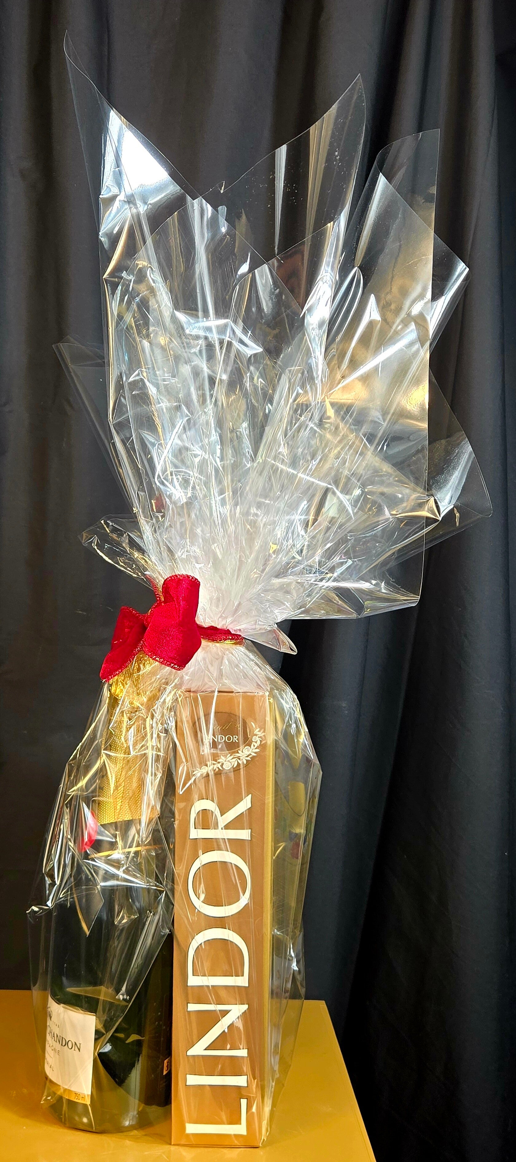 This elegant gift features a 396 g box of assorted Lindt Lindor chocolates, loved for their irresistibly smooth, melt-in-the-mouth centres, perfectly paired with your choice of Moët & Chandon Brut Impérial or Veuve Clicquot Brut champagne.
