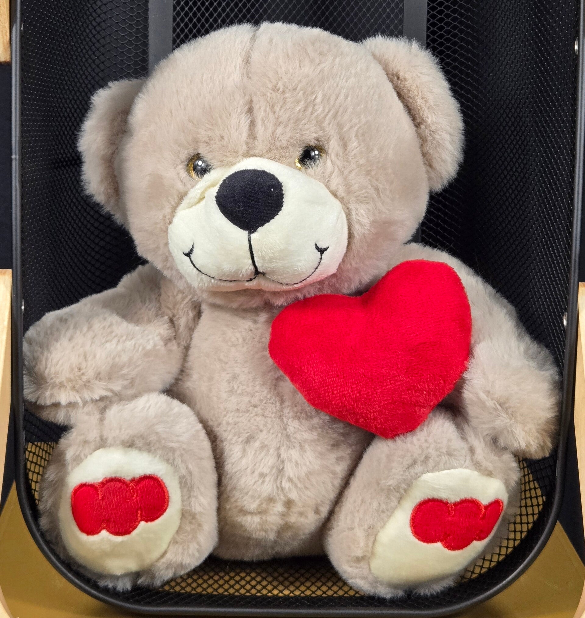 Say it with a cuddle. This beautifully soft beige teddy bear is holding a plush red heart, making it the perfect symbol of love, comfort and affection. With its gentle smile, velvety fur, and heart-detail paws, this teddy is designed to bring warmth and happiness to anyone who receives it.