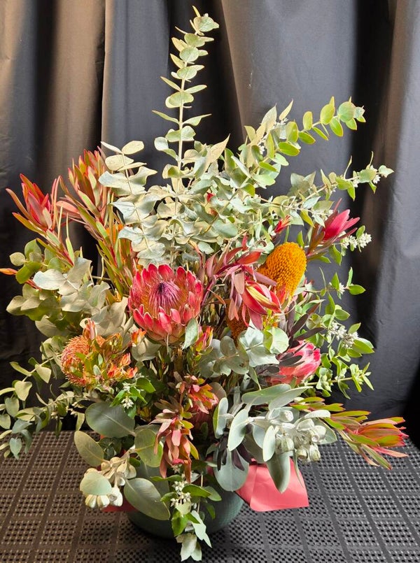Celebrate Mum with something as strong, beautiful, and unique as she is. Wild at Heart is our signature Mother’s Day native bouquet, thoughtfully designed using a stunning mix of Australian natives and complementary seasonal blooms. Think textured banksias, bold proteas, and soft fillers blended to create a naturally striking, long-lasting arrangement that feels both earthy and elegant.