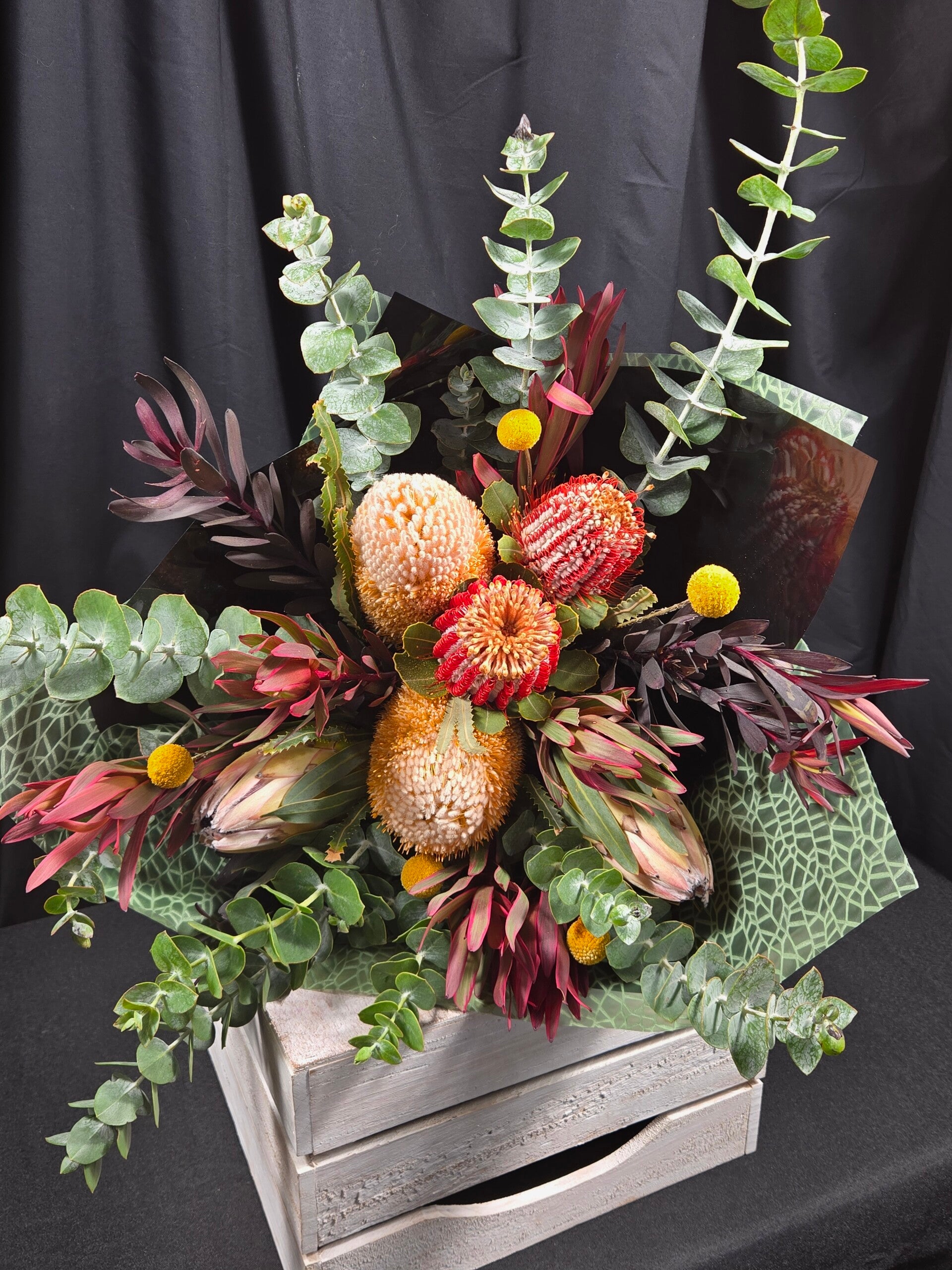Each bouquet is florist’s choice and one-of-a-kind, meaning no two are ever the same—just like Mum. Designed with love from our Karnup studio, this bouquet is perfect for mums who adore natural beauty, rich textures, and something a little different from the traditional.