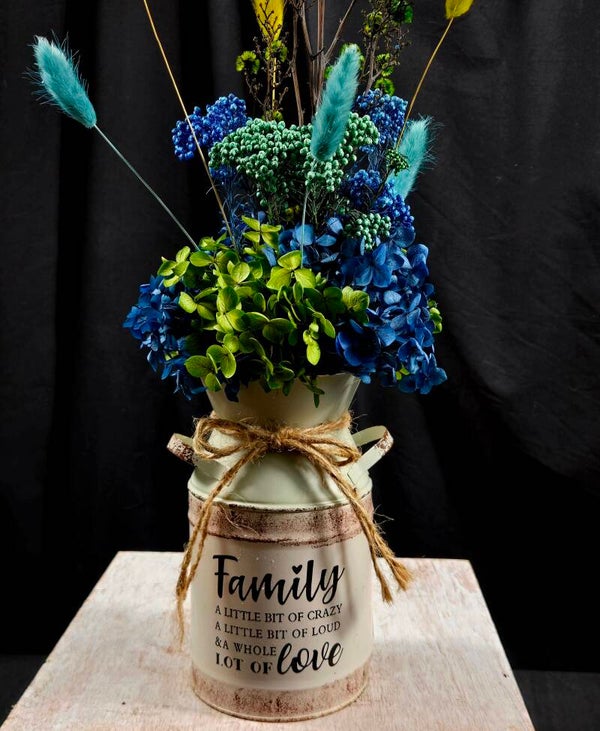 Presented in a rustic tin with the meaningful message “Family – a little bit of crazy, a little bit of loud & a whole lot of love,” this piece is a beautiful tribute to the heart of the home. Perfect for gifting or adding a bright, uplifting touch to your space.