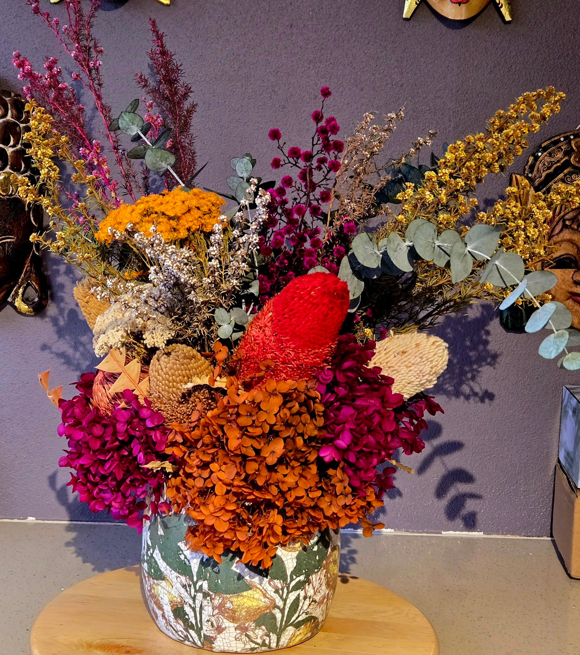The Wild Bunch Florist and Living Gifts created a wonderful floral arrangement with a mix of soft flowers & Australian blooms and delivered to the our relative in hospital. Great Service.